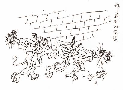 ◆黄永玉 文/图 编者按 身世苦难,偶入黄家;主仆情谊,两代故事。黄永玉先生温馨妙笔下曹玉茹阿姨的故事,带我们走进他的亲情世界。 在北京几十年,我们搬过几回家。 先住东城大雅宝胡同美院宿舍,离学院远了一点,每天来回花好多时间,后来搬到美院北边一列宿舍中两间一套的房间里,孩子长大了,显得挤,又搬到火车站前的一条罐儿胡同里。 一九六六年的开始和唐山大地震都是在这个时候发生。 遇到一件倒霉事或喜事,不管大小,人都喜欢找出一些迹象或预感。我不参加这类神聊。认为天灾人祸该来就来了,难以抵挡又何必预测? 搬不搬罐儿胡同,地震和一九六六的开始都会发生。跟一个人在街上闲逛,让七楼或八楼掉下来的花盆砸死了不一样(见图一)。他那天那时候不出门就不会被砸死。更不是楼上的人等他经过才故意推下花盆。 我今年九十八了,朋友们有时候发神经称我这辈子运气好,掐着手指头算我度过的磨难当玩笑。听了这类话我一无所获,既不饱肚子也不整精神更不感危机四伏。 一句话,大概上天看我自小没出息,不值得弹拨而已。 假如硬要我承认这辈子总是运气好的理由也未尝不是没有:一、有许多倾心可敬的朋友。二、自己还算是认真在做事。 好,扯远了。兜回来。 一 阿姨名叫曹玉茹 住在美院北宿舍的时候,我们请了位阿姨名叫曹玉茹。她老家怀柔就在北京附近。是她姨兄带来的。姨兄认识美院的一个人(这人已经印象模糊)。姨兄在北京工厂做事,是个厚道人,以后日子和我们常有来往。 姨兄说曹玉茹阿姨境遇不好,孤单一个,在北京不认识什么人。听说我家请保姆就把她带来了。曹玉茹阿姨长相算不得好,高大魁梧,脸上没有笑容,皮肤绿绿地,站在门口好大一个影子。带来的随身行李之外还有架缝纫机。姨兄走的时候说:“她可以做衣裳”。从此以后,我们家有了曹玉茹阿姨。大家生活在一起好多年。孩子长大了,她自己也找到一位对象陈师傅,是在建筑公司干活的,结婚后老陈工作的建筑公司在八大处有工程,阿姨住八大处还带黑妮去玩过。之后他们有了儿子。孩子调皮不读书,后来到一个厨艺学校学习毕业当了厨师。陈师傅过世了。孩子找到对象,结了婚,阿姨跟儿子媳妇住在一起,听说日子不怎么和谐,不过按她的性格,这类小事都能控制得住。 黑妮在国外读书,每次回来都会去看她。她曾经说过:“可惜我老了,要不然去帮你们看家。” 这话说了就说了,听了就听了。现在想来,为什么不马上接她来呢?看什么家呢?我们管你,大家一起过几年太平日子。 现在阿姨在哪里呢?要是在也得一百零二岁了。我们都很挂牵她。 二 在潮白河边坐了三天 曹玉茹的家就在北京怀柔县,丈夫是当地的游击队长,专门打日本鬼子,一次在与鬼子激战中牺牲了。鬼子进村,把他们的双胞胎儿子扔进潮白河。阿姨当时回娘家,返家后一个人在潮白河边坐了三天(见图二)。之后就进北京找姨兄,托人找事儿做,在缝纫社学过,攒钱买了缝纫机。 在我们家,有的客人暗地里惊讶:“你们家这个曹阿姨,怎么不见笑容?” 我说:“你要是清楚她上半辈子的事,你都笑不出!”梅溪对朋友称她是我家的“陀螺仪”,起着轮船上稳定的作用。她懂得人生,她也笑,她笑得不浅薄,她有幽默的根底。她喜欢黑蛮黑妮,他们之间有个不成文的约法三章。三人相处有很多话讲,值得笑的笑。我们家里的熟朋友她都熟。绀弩、郑可、陆志庠、曾祺、苗子、郁风……来了新茶,问都不用问就给泡上了。一件暗暗使我们吃惊的事是:绀弩见了她,每次都要从座位上欠欠身子。他听说过她的故事,有次在路上还提起怎么写她?诗?小说?还是剧本?“唉!爱,恨,祖国,死,活,在她那里怎么都那么简单?那么短?” 有的人来了说完事就走,就绀弩伯、志庠伯、曾祺伯来要快预备炒菜,预备酒。 有次吃完饭,喝完酒,正重新砌上茶,开始聊天之际,她忽然端了一盆热水过来放我面前说:“黄先生,你都快半个月没洗脚了!让大家说说!”于是大家敞开嗓子说起来! “马上洗!马上洗!太不像话!检查检查脏成什么样子?” 黑蛮已经念小学了,听说很淘气,上午刚被选上班长,下午爬窗子让老师把班长撤了。等他吃晚饭不见人回来,阿姨二话不说,缠上头巾出门不到一会儿就把他带回来了。 “你哪里找到他的?” “王府井儿童商店,他蹲在玻璃那边看玩具。”参加世界儿童画比赛得了头奖。学校因为他淘气没批准入少先队,戴红领巾。原本米市大街小学有人得世界儿童画比赛头奖应该开心的,没想到得奖的是个没戴红领巾的淘气人。做父母的也不好过,开自己玩笑说:“要是像清朝可以捐官,简直想花钱买条红领巾。”这事没过多久,学校通知黄黑蛮可以入队了。要借美院北边后勤部礼堂举行少先队入队仪式。 我们全家都很开心。一早买来叉烧包做馅的材料,前一天阿姨就发好面。米市大街小学到后勤部礼堂要走煤渣胡同转校尉营好长一段路,只要乐队号鼓一响,我们马上就会冲出去,欣赏我家黑蛮夹在队伍里的雄姿。 果不其然,号角响了。我们冲到大门口,原来是磨菜刀剪刀的老头敲脸盆,吹大铜喇叭弄出的热闹。 回到宿舍,眼看阿姨刚蒸好的叉烧包全让大白猫掀得满地都是。阿姨耐心收捡进竹箩里,剥掉肮脏皮,准备黑蛮回来吃油煎叉烧包。 说时迟那时快,戴上红领巾的少先队员黄黑蛮光荣回家了(见图三)。笑眯眯站在面前,向大