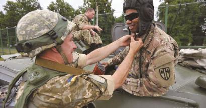 ![]() 美国军事教官与乌克兰军人试驾装甲车 ![]()