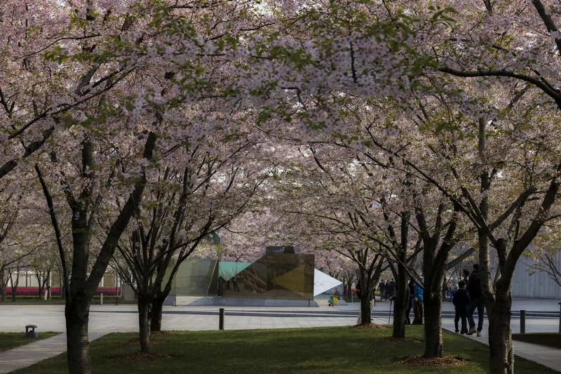 赏花是清明节的习俗,上海徐汇西岸樱花。摄影/日升