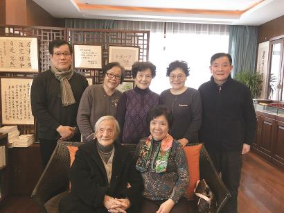 赵家兄妹与百岁母亲在“赵丽宏书房”