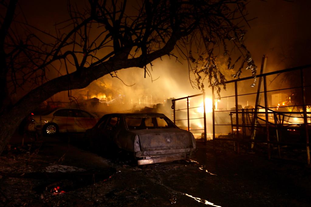 这是2022年9月6日在美国加利福尼亚州里弗赛德县拍摄的被山火烧毁的汽车。(新华社发)