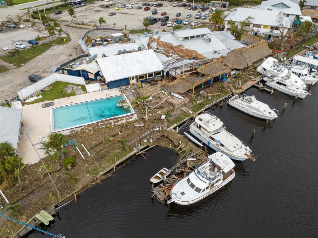 2022年9月29日,在美国佛罗里达州西南沿海的迈尔斯堡,飓风“伊恩”给当地房屋、道路等设施带来不同程度破坏。(新华社发)