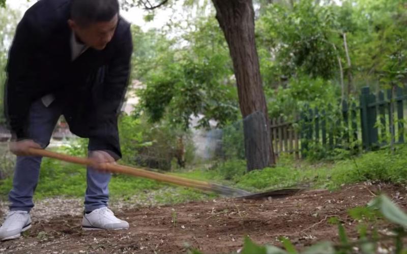 ▲李亚鹏发布的视频中,其铲掉了院子里的菜苗。截图来自李亚鹏个人视频账号