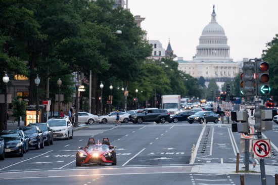 9月13日,车辆从美国首都华盛顿国会附近驶过。新华社记者刘杰摄
