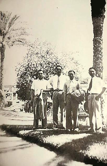 粟宗华(左二)留学期间与学友在尼罗河畔,摄于20世纪30年代 照片由作者提供
