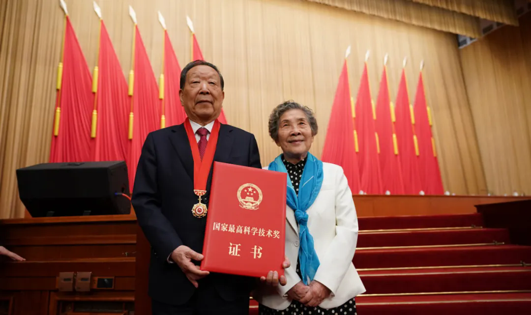 ·2024年6月24日,获得国家最高科学技术奖后,李德仁与妻子朱宜萱合影。