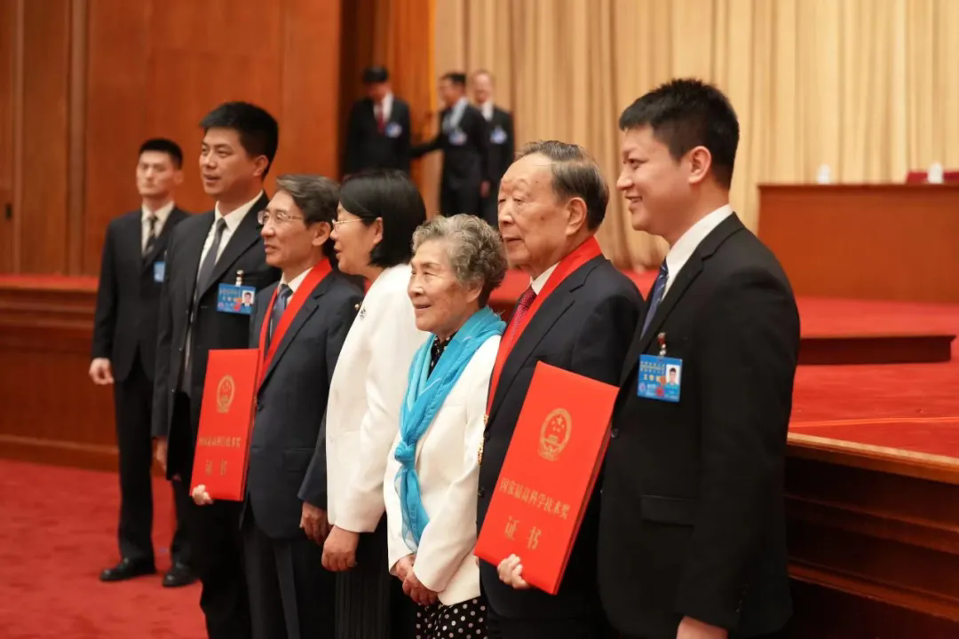 ·2023年度国家最高科学技术奖授予李德仁(右二)、薛其坤(右五)两位院士。