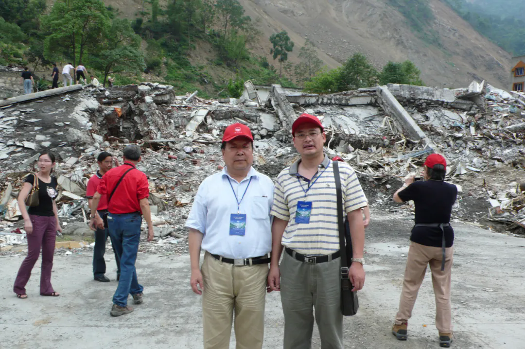 ·2008年7月,李德仁(左)考察汶川震区。(武汉大学供图)