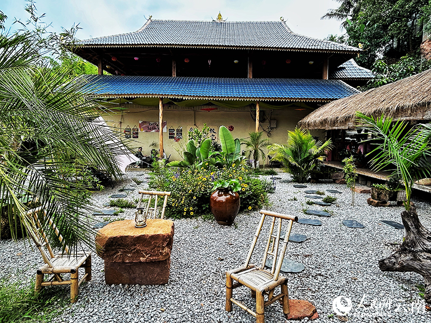 听说盘龙区与尚冈村帮带共建,陈忠心里盘算着,“村子以后肯定会发展得更好”。去年三月,这个老家在普洱的汉族女婿把心一横,回到了尚冈村,打算在这儿“大展拳脚”。 回到边寨,能干啥? 从昆明市盘龙区来到尚冈村驻村的第一书记谢继刚听说后,给陈忠出了个主意,“建个有特色的休闲小院,咋样?”一想到这与尚冈村的发展规划不谋而合,陈忠的激情一下子就被点燃了。“咱也大胆摸摸石头过河!”陈忠一咬牙便投了100万元,成了村里“第一个吃螃蟹的人”,开起了特色餐饮休闲小院。 陈忠自己动手,上网学装修风格,和岳父一起亲手制作帐篷、摆件、碎石、凳子等院内摆设,把原本岳父母堆放杂物荒废的老宅,就地“变身”成了一个极具特色的休闲小院。改造期间,谢继刚也不时给陈忠出出主意,等到要办证照的时候,村委会和驻村队员们更是为他提供了不少便利政策。 小院筹备之初,陈忠就琢磨着,得让小院主打老挝和傣族的特色。他考虑,“村子旅游搞起来后,小院想要留住客人,光靠复古的建筑和风格可不够,还得深挖背后的文化。” ![]()