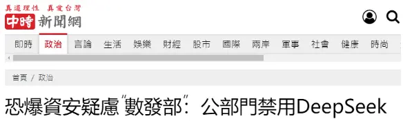 民进党当局也盯上了DeepSeek(责任编辑:北风) |