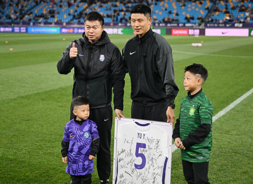 2日晚的中超联赛“京津德比”开踢之前,举行了一场温馨的退役仪式。在北京国安和天津津门虎都效力过的35岁老将于洋,在现场球迷的见证和祝福中告别绿茵赛场。