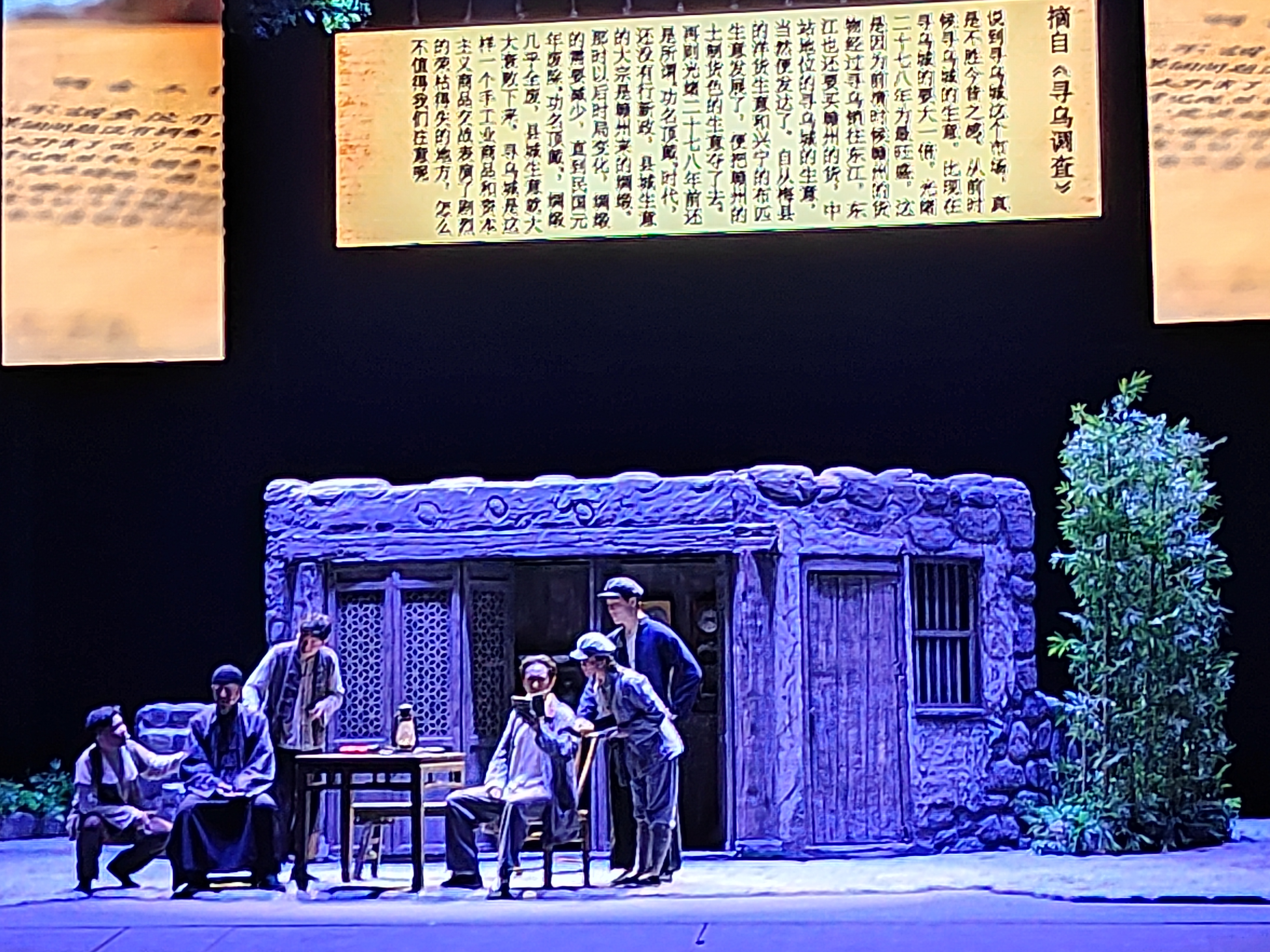 6月6日晚,初夏热风吹拂,在上海江西促进会陈树雄老师的热情介绍推荐下,我走进大宁剧院,观看一场革命历史题材的话剧演出。, 这是为纪念毛泽东同志寻乌调查95周年,传承没有调查,没有发言权的实践精神,由深圳市宣传文化基金、深圳市龙岗区宣传文化发展专