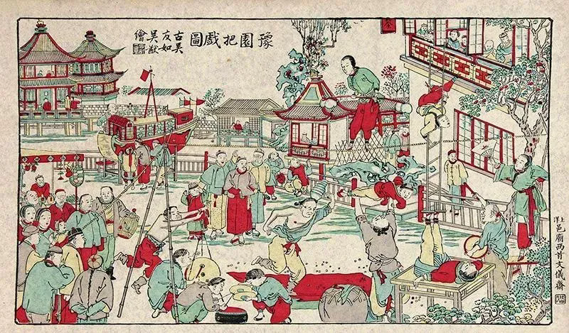 清末上海小校场年画《豫园把戏图》(上海市历史博物馆藏)