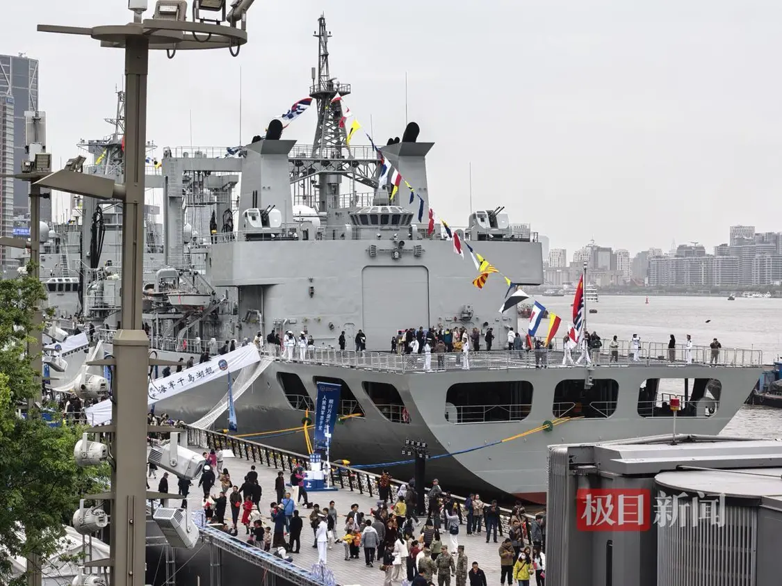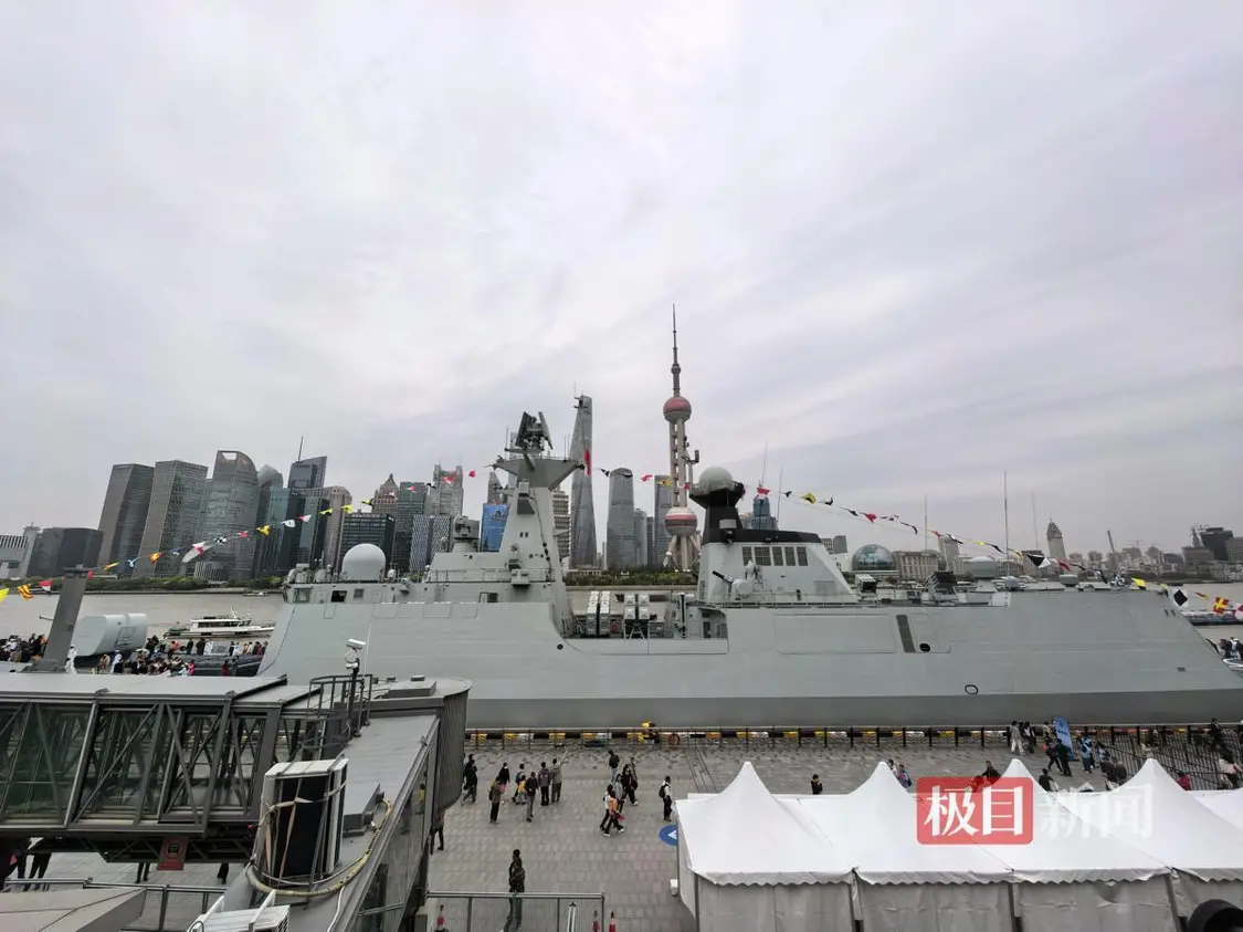 双舰再与东方明珠同框,观众争相留影:站在旁边才知道它有多大 极目新闻记者 杜光然 4月21日,以上海海上为主题的舰艇开放活动在上海港国际客运中心码头启幕,海军阜阳舰、海军千岛湖舰停靠在岸,与上海地标同框亮相。回望去年同期,导弹驱逐舰西安舰、综合