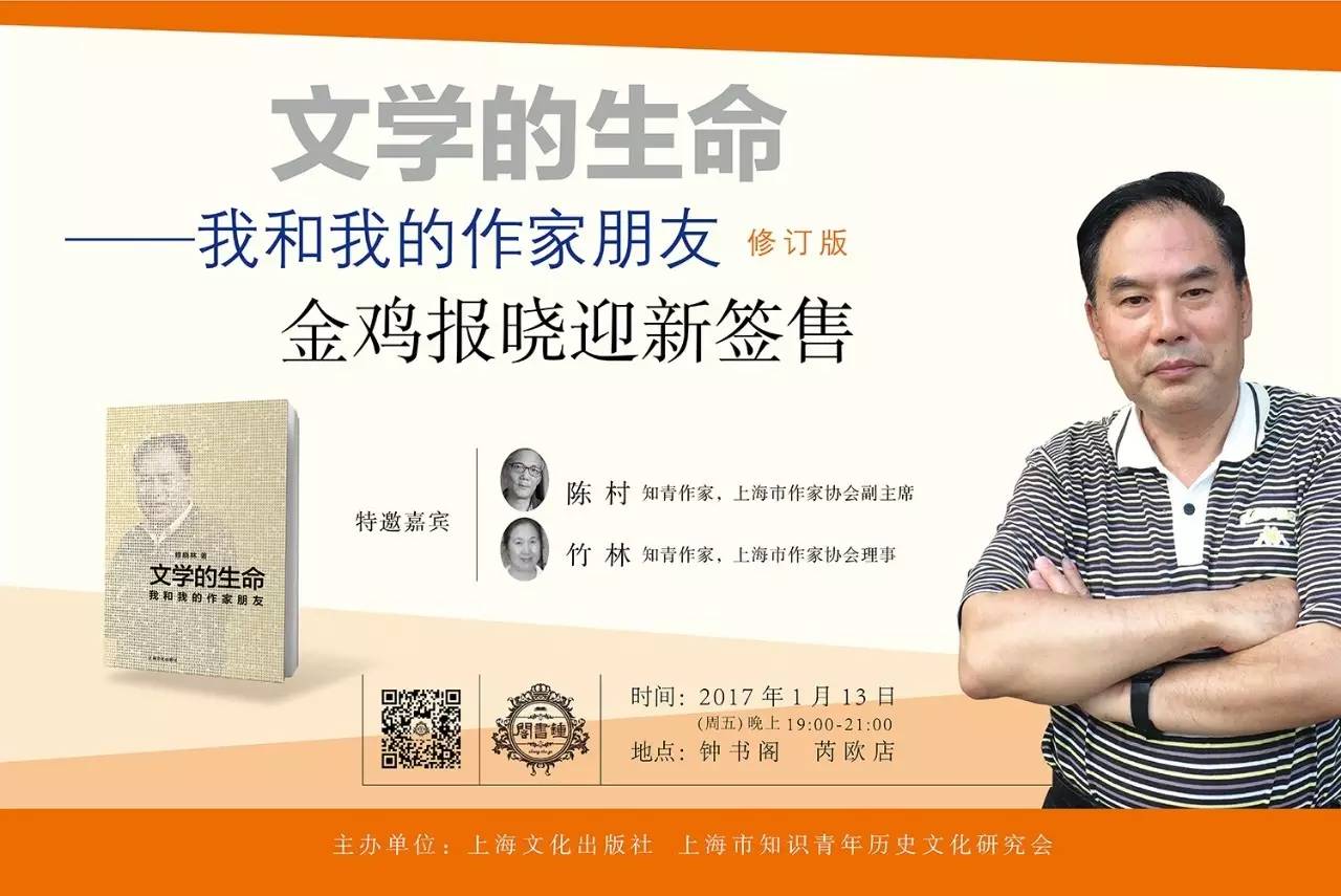 活动时间:2017年1月13日(周五)19:00-21:00 ☞活动地点:钟书阁 芮欧店 (上海市静安区南京西路1601号芮欧百货四楼) ☞报名方式:无需报名,到达现场即可参与活动 上海文化出版社、上海市知识青年历史文化研究会,将于2017年1月13日周五晚上19:00—21:00在中国最美书店钟书阁芮欧店共同举行上海文艺出版社高级编审、中国作家协会会员修晓林著作《文学的生命—我和我的作家朋友》修订版金鸡报晓迎新签售活动。 《文学的生命》出版后社会反响一路升温:2016年夏上海书展首发(嘉宾曹可凡、叶辛、王唯铭);11月“修晓林捐赠手稿暨《文学的生命》出版座谈会”(20余位作家评论家出版家出席并热烈发言);自2016 年12月29日起,新民晚报正在每日精选连载《文学的生命》;中宣部党建网站上线连载本书精彩篇章。本书初版很快售罄,现已是出版社加印修订版。 本书是作者基于长期的文学编辑实践,在与作家深入的交往交流中,创作的一本既有“文”也有“人”、既有“情”也有“识”、既有历史也有当下的散文集。书中的文章深情凝重,以绵密细腻的笔触记录了作者在文学界的行走,展示了近百位当代作家的个性风貌。 在书中,修晓林讲述了与近百位作家的交往故事,从已逝的名家巴金、冰心、柯灵、萧乾、王元化、李子云、陈忠实到如今仍活跃于文坛的刘心武、冯骥才、阿城、叶辛、马原、张抗抗、梁晓声、王小鹰、彭瑞高、王唯铭等等。 这些带有亲历性的叙说鲜活有趣,既是当代文人相亲相敬、相补相助的故事,也是上世纪80年代以来关于文学的历史记忆。 55万字,近200余幅现当代作家生动照片精装本《文学的生命》,情感凝重,绵密细致,读书做人,修身养性。