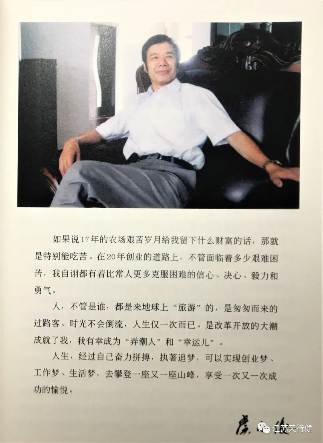![]() 按自己的习惯,收到一本书后是先看作者简介,再读序、前言,了解目录,再看后记。初读这几个片段,感受的是别有风味!简明概要的叙述,没有长篇大论的刻意渲染,一个有血有肉、充满人生传奇的老知青、政府官员、创业者、优秀企业家、知青文化研究的领军人物随着字节的跳动迎面走来! 几十年的风雨人生,困苦的童年,坎坷的青春岁月,丰富的经历,传奇的留痕,独特的思维和理念,这些带有时代特征的音符为作者独创了一支旋律,谱写了一首绚丽的生命之歌。 作者自称是“弄潮人”和“幸运儿”。青春年少时吃的苦,特殊岁月中的锤炼,回城后的坚持学习,铸就了他热爱事业的特质和通过知识改变命运的见识,坚毅、执着、果敢,说说容易,可真正做起来非一般人能承受!尤其是在改革开放的初期,一切没有现成的路可走,摸索着前行必然会遇到一个个突然而至的困境,没有相应政策扶持,没有现成的经验可借鉴,一切全靠自己!书的第一部分“企业哲理”和第二部分“梦想成真”,是作者闯荡商海、实现梦想的写照!我贪婪地细读,虽然“企业哲理”仅有九个单元,我却花了很长时间细细品味,127条企业管理一得集,企业领导要了解历史和哲理,向温州商人学习,放权、授权、用权艺术,科技兴厂、重在人才、市场经济呼唤观念更新等,这些都是一个成功的创业者、企业家从白手起家,到建成中国机械工业500强企业、江苏省高新技术企业的宝贵经验啊!这些经验和体会中有的很有可能是花了学费、付了代价得来的!善于学习、善于总结、胆识过人,这应是现代创业者和企业家首先要具备的!这些宝藏放在书的开头,足以可见作者的经营理念和人生哲学,对此体会之深可见一斑。在这些文字中游走,我突然想到作者的管理团队和员工们,他们能够在作者手下工作,追随这样的领导,该是多么幸运! 事业的成功并不完全是靠能吃苦、勤奋、努力去做就可以的,企业文化实质上是老板文化,企业管理是一个体系,每个环节都是重要的一环。书的第二部分“梦想成真”,通过多家新闻媒体撰写的通讯报道,全方位地展示了金诚公司和作者为梦想而奋斗的轨迹。 我借助这些记者敏锐的视觉和专业的写作,从中汲取着营养,感受着从17年知青经历中走来,又从政府官员的位置上毅然下海的创业者的脉搏和心跳。“智慧、毅力、向心力、号召力和凝聚力”,“洞察力、判断力和果断决策的精准力”,作者用了这样的词,阐述这是自己多年来从自己或别人成败得失中逐步感悟到的一种“商智”,并概括和提炼出可以指导创业者的商业文化,即“商儒”。创业者前赴后继,但真正做得好,走向成功的企业家真的不多。创业失败有一千条一万条理由,成功的企业家,他们的密码是自我设置的,因为,这不是拿来即用,而是用越了千座山、淌了万条河,在挫折和血泪中收获的。每个企业都是独一无二的,每个创业者的成功也是无法复制的!作者一路走来,不仅给社会创造了利税大户,解决了大批员工的就业,还敲开了一扇扇高科技产品的大门,成为出口和替代进口比例最大的企业之一。 记者们在不同的时间段,用不同的视觉和笔墨走近金诚公司,近距离地探索、挖掘作者的成功之道。我们在起伏中感受着作者创业的过程,也思索着成功之人必有过人之处,人生没有捷径,商海寻梦,梦好做,成真却不易!作者用20年的创业,浓缩了人生的精华。 书的第三部分,谈到了“感悟人生”。五个单元,让我们看到了更加睿智、潇洒的作者。创业不易,越过了一道道坎,收获了最初的梦想,却能在辉煌的时候思考“善见物外之物,常思身后之身。”从离任发言、游海岸牌坊有感、母亲留下的遗物,到纪念苏州知青赴东辛农场50周年聚会上的发言,看到了作者在人生关键转折点时的人生观和价值观。万事皆有因果,曾经的知青岁月、母亲的品格、生活的留痕、工作的变迁等等,人生是要面对各种不同境况的,有的是自己无法选择的,而人的品性、格局、对知识的渴求和从小受到的教养却深深地影响着人的一生。人皆可成佛!作者商海梦想成真后,坦然为自己规划未来,这不是每个人都能做到的,感悟人生,感悟怎样的人生?书读到这里,另有一番感触涌上心头。 书的第四部分,作者用五个单元回顾了自己劳动、工作、创业过的五个单位。每一步都是踏踏实实地工作,积累、沉淀着知识、经验、人脉和教训。现在的人跳槽常有,可在几十年前,提倡的是干一行爱一行,要又红又专,换工作更多的是领导下的调令。作者感慨在曾经工作的地方收获的一切,前行的脚印、人生的一个个驿站,铸就了今天的梦想。青年时的黑白老照片、有年代感的工作照,与老同事、老朋友的相聚,职场几十年都浓缩、定格在其中。现在再去看看那浸注着青春汗水、创业起步的艰难、壮年和中年奋斗的身影,得到第一笔订单的喜悦,时光不会倒流,但刻在骨子里的记忆永远不会忘却! 书的第五部分,五个单元的“多彩生活”,园艺、书画、盆景、保龄球、旅游。我惊讶于作者农村17年的知青生活,回城后的读书、工作、创业,忙碌中竟有这么多且都玩出名堂来了的爱好!在一般人印象中,企业家是没有时间属于自己的,且大多是机器人或不懂生活的工作狂,可作者给了我们改变观念的机会。 我饶有兴趣地欣赏着其中的文字和一幅幅照片,作者花园别墅里的园艺作品“卷云峰”“清风
