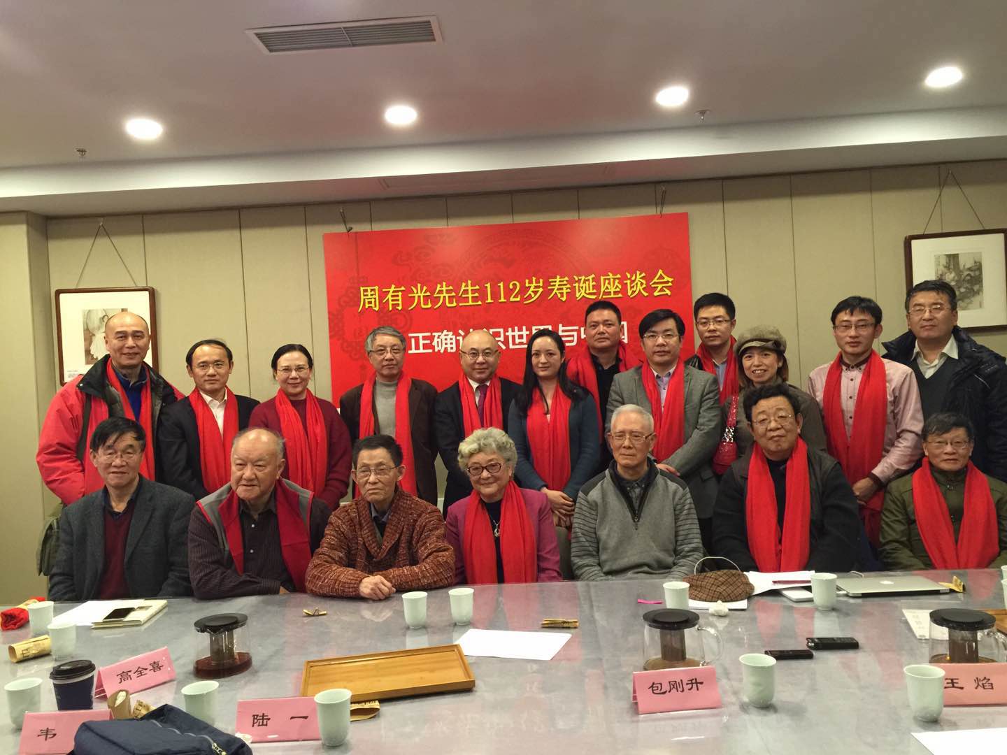 1月14日上午,周有光先生112岁生日的次日,部分专家学者在上海大隐书局为他举行了生日座谈会,本次活动由大夏读书会举办。周有光的外甥女张马力在论坛开场时向与会的专家、学者介绍了舅舅周有光的近况,称老人身体不太好,“眼睛空空”,“他的心已经走了”。