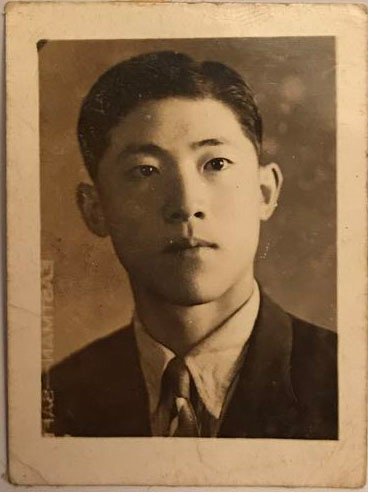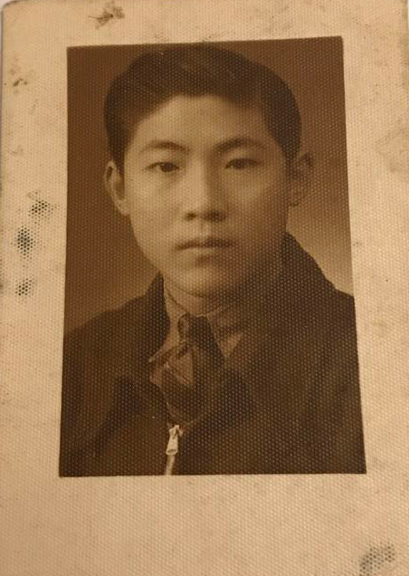 两张发黄的黑白照片放在桌上。相片上是同一位主人公,着西装,打领结,三七分的头发梳得一丝不苟。 ![]()