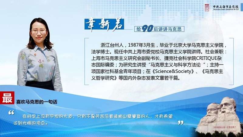 英雄出少年片 -本讲完- 马克思划重点 我出生在德国西南部一座小城,叫特里尔。我的父亲是一名犹太律师。我没有上过小学,启蒙老师就是我父亲,他除了教我德文、算术和图画课程之外,还经常带他去参观各种展览,游览名胜古迹,睡前给我念法国知识泰斗伏尔泰的作品。他希望,我以后能子承父业,成为大法官、大律师,但你知道我的职业理想是什么吗? 下集预告: 十七岁时的马克思,还只是特里尔中学里的一枚小鲜肉。但他当时写的一篇作文,名字叫《青年在选择职业时的考虑》其中写道:“如果我们选择了最能为人类而工作的职业,我们的幸福将属于千百万人。” 马克思 不是教科书上的一个符号 也是有血有肉 有故事的男同学 今年是他200周年诞辰 我们特别邀请了8位 来自上海市委党校的80后教师 给90后讲讲马克思的那些事儿 ![]()