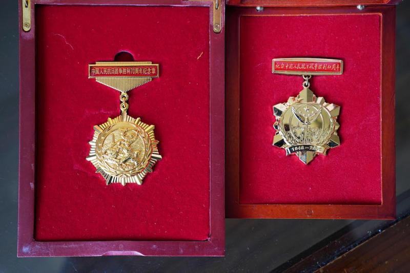 吴翠婵获得的中国人民抗日战争胜利60周年和70周年纪念章。