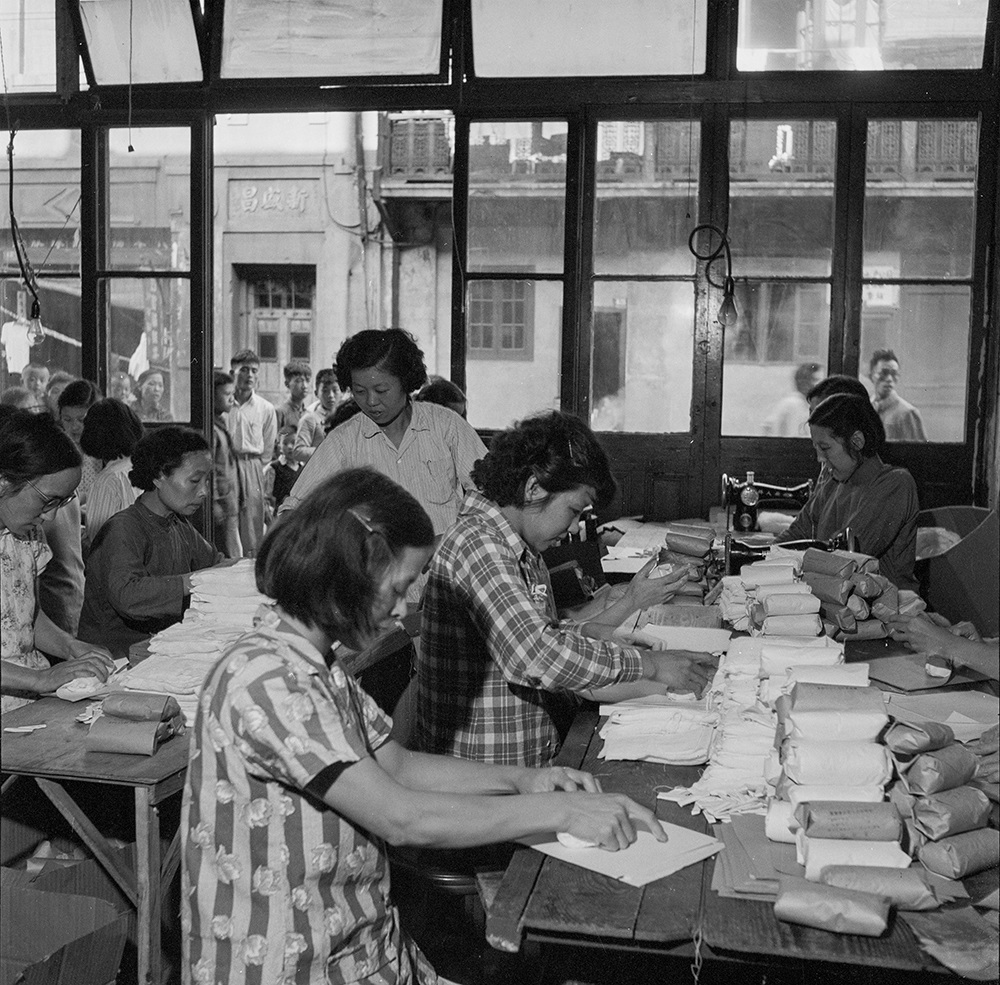 1949年11月17日,解放日报在头版刊登的《上海各界妇女代表会议通过今后上海妇女工作的决议》中,重点指出了家庭妇女这一人群未来发展方向,说她们中“有失业的女工、失学失业的女学生,和学有专长的知识妇女,也有各种宗教信仰者,还有极大多数从未受过教育或曾受过相当教育、整日整年忙于家庭劳动的妇女们。在这些家庭妇女中,有不少已感到旧社会残存的封建思想与习俗,对妇女的束缚,要求改变生活方式,参加生产与学习,甚或愿以经济力量,举办妇女福利事业,这也是新上海建设中不可忽视的力量,必须组织起来”。 家庭妇女的个人命运,被作为一种城市建设力量慎重以待。如恩格斯所言,“妇女解放的第一个先决条件就是一切女性重新回到公共的劳动中去”。 从上世纪50年代开始,上海的妇女组织和有关部门,就着手组织家庭妇女参加生产。吴翠婵对第一次组织妇女参加劳动的经历记忆犹新:“当时要筑一条从闵行到上海市区的路,我们就组织了黄浦区的家庭妇女去筑。她们第一次走出家门过集体生活,简直高兴得不得了!每次往返市区,我都要帮她们给家里带信,回闵行的时候再带给她们。因为通过劳动得到了尊严和认可,妇女的精神面貌不同了。” ![]()