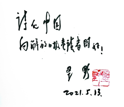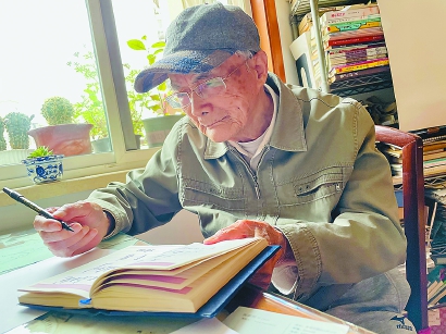 ■记者 施晨露 “六一”儿童节前夕,记者拜访了百岁“诗娃娃”——诗人圣野。 尽管如今以居家为主、外出不多,但在诗的国度里,圣野一直是逍遥的。熟悉他的人都知道,他有一个“诗化家乡、诗化中国”的梦想。 苏州河畔,光复西路,一间朝南的卧室兼书房,透亮的窗台边,那张压着透明玻璃板的柚木书桌,就是属于圣野的诗的“园地”。不久前,圣野度过了自己的虚岁百岁生日,距离他“做一百岁到一百十五岁的诗娃娃”的目标,又近了一步。 “六一”儿童节前夕,记者登门拜访这位“诗娃娃”。见到来客,圣野从书桌上拾起一本小小的笔记本,拧开笔盖,一起递过来:“给我写几句话吧,随便什么都行。” 这本蓝皮本子的封面贴着标签“百字文,圣野”,翻到最新一页,上面写着“天亮——天亮最可爱,亮点化为诗”。 “无拘无束,诗就是从生活里来的。”这是圣野在将近80年的创作生涯里一直信奉的。 和记者告别之际,圣野又拿出了他的小本子,坐到书桌前,挥毫写下八个字——“无高不就,无诗不到”,又有些调皮地补上落款:“圣野的吹牛诗”。 东阳走出的“小朋友” 百年前的浙江东阳李宅镇,是一个有500户人家的江南大镇。神坛街有一户周姓农家,1922年,家里诞生了一个男孩,排行第六。东阳话里,“六”与“鹿”同音,家里人叫他“大鹿”“鹿鹿”。 在大鹿的记忆里,小时候,自己家的门口,常年挂着一张“诗礼传家”的斗方。对六兄弟,父母有个要求:每个孩子至少读到小学毕业。 大哥读过《聊斋》,一有空就给大鹿讲蒲松龄笔下的奇闻逸事。五哥槐庭和大鹿相差三岁,对他影响最大。除了结伴上学,他俩还会参加一些简单劳作,采棉花、摘丝瓜,干完农活,就在田间嬉戏,时常带些会蹦会跳会唱歌的小动物回家。童年的大鹿没有写过诗,但与阅读、大自然做朋友的时光,就是一首永远写不完的诗。 读了几年私塾之后,周家父母把槐庭、大鹿两兄弟送进了李宅小学。在李宅小学,大鹿学唱的第一首诗,就是登在《小朋友》创刊号上,由陆费逵作词的《小朋友》。谁也不会想到,这个爱看《小朋友》杂志的周大鹿小朋友,后来成了一位叫圣野的诗人,成了《小朋友》的主编。 当年的李宅小学,离李宅宗祠很近。宗祠西侧有段高踏步台阶,上头的青色板石条,被村民们磨得锃亮。圣野把它叫作“百步阶梯”,多年后为它写了一首诗: 村里最好玩的地方 要数那一条百步阶梯 爬上梯顶 可看到村子的全景 走下阶梯 能听到祠堂的大戏 我喜欢来到阶梯 上上下下 做着一个 最最快活的游戏 今年5月,圣野的学生、忘年交鲁守华刚爬过这段台阶。这位年过花甲的童诗研究者、推广者感慨,来过诗人的家乡多次,不止一次登上过这段高高的台阶,但每一次的感受都不一样:“或许,这就是诗的神奇之处。” 圣野对孩子、对童诗的爱,如痴如醉。在童诗界,大家都知道,只要哪里有儿童诗的活动,请到圣野,他一定会去。2017年,96岁的圣野还曾回到故乡、母校,和孩子们一起写童诗、朗诵童诗,分享童诗带来的快乐。 全国各地,受过圣野指导、帮助的作家、诗人、小朋友不计其数。某种程度上,鲁守华就是被圣野和他的诗,改变了人生轨迹。20世纪60年代,鲁守华是天山一小的一名小学生,圣野夫人方彩香是他的语文老师。放学后或周末,班里的孩子们常常到方老师家中写作业。20世纪90年代初,鲁守华带着刚上小学的儿子找到了老师,两代人因为诗重新联系在一起。 在圣野的眼中,每个孩子都是天生的诗人。在他的指导下,鲁守华的儿子写了十本“一句话”日记。追随着圣野,成年后离诗已经很遥远的鲁守华也重新拾起了自己的文学梦。 “儿童诗的事业,就像接力赛。要有人写,有人传播,把这个事业接力下去。”这是圣野对后辈们说得最多的话。 一晚上最多写了160首诗 圣野开始写诗,是在中学时代。 当时,金华中学为了躲避敌机空袭,搬迁到了乡下。1941年秋天,圣野在金华蒲塘念高一,到书局买了一本《诗创作》,读到了艾青的诗,有耳目一新的感觉。他与高中同学发起组织“蒲风诗社”,编印《蒲风》油印诗刊,有一回,诗兴大发,一晚上连着写了19首诗。不久,他写了一首回忆童年的诗,寄到报社。 1942年3月23日,《前线日报》“学生之友”版发表了这首《怅惘》: 白天, 我自记忆的栅栏里牵出白羊 抚摩他,爱他,惜他 然而事实却摈弃了他 怅惘撒下了网 梦里, 白羊自来凑近我了 亲我,爱我,吻我 突然,白羊被隔开了 我诅咒那一道真的墙 我又成了怅惘的俘虏 对于自己走上诗坛的处女作,圣野后来解析道:诗中的“我”和“羊”实际上暗喻着现实和理想。从诗中的“我”与白羊相亲、相爱的关系,不难感觉到隐藏于其中的一份童心,感觉出当时的他带有进步的思想与浪漫主义的文学气质。 高中三年级时,圣野的同学鲁兵从浙南流浪回来,拿着一份自编自印的《岑风别刊》作为见面礼。他们一起畅谈文学理想,一起朗读珍藏在案头的手抄本:艾青的《透明的夜》《大堰河,我的保姆》和田间的《给战斗者》等。两人很快有了共同语言,自写自刻自印,办起了油印的文艺刊物《岑风》。 1946年,在浙江大学师范学院英语系学习期间,圣野与鲁兵一起参编《中国儿童时报》,负责“自己的岗位”栏目——专门刊登小朋友写的作品。圣野看小作者的来稿,还经常走访学校、幼儿园、孤儿院等,做义工、教学观摩。为了帮