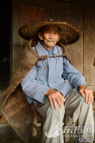 图片说明:头戴斗笠,身披蓑衣,再穿一双草鞋,陈大明当年就是这样一身行头为远征军运送粮食。