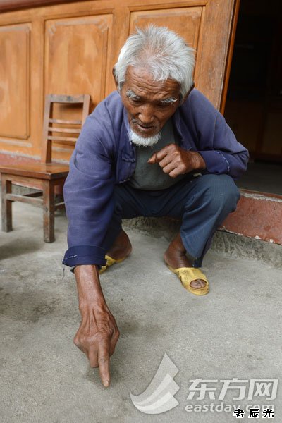 王兴在地上比划,向东方网记者讲述当年挖战壕的情景。