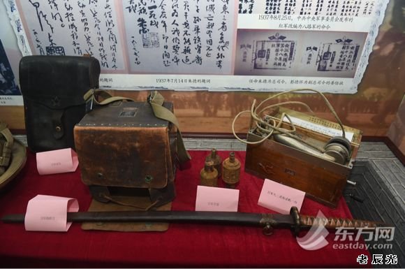 图为展览中展出的国民党部队所使用的战刀、钢盔以及中正式望远镜。作为抗日战争的主战场和最前沿,中国军队曾在山西省与日寇浴血奋战。其中,太原保卫战更是惨烈至极。在忻口、娘子关等战略要冲相继被日军突破的情况下,傅作义率部死守太原城,无奈最终功亏一篑,太原于1937年11月9日沦陷。
