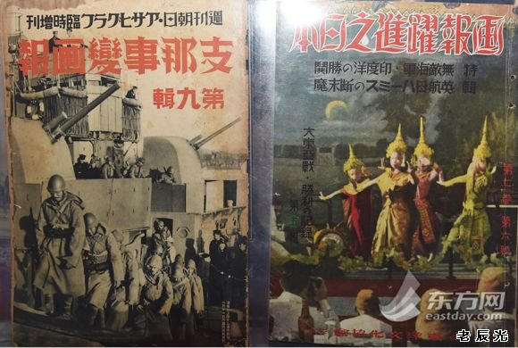 日本对于战时宣传工作同样十分重视。图为抗战期间配发到前线士兵手中的日本杂志,其内容无一例外都是鼓吹"战无不胜"的"皇军"在"大东亚圣战"中取得的所谓"辉煌战果",用以鼓舞前线日军士气、美化和合理化侵略暴行。