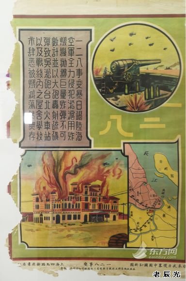抗战初期,各地出版社都满怀责任感,印制了大量号召抗日救国的宣传招贴画,以期激发全社会的爱国热情和救亡意识。图中的这幅招贴画由上海四马路新亚书店所印制的,内容为揭露日军在“一二八”事变中所犯暴行。