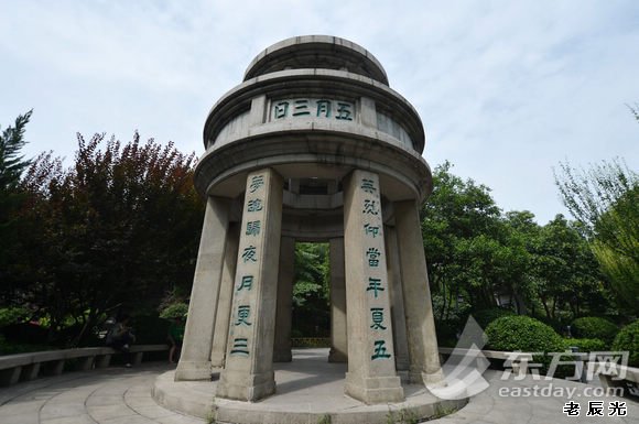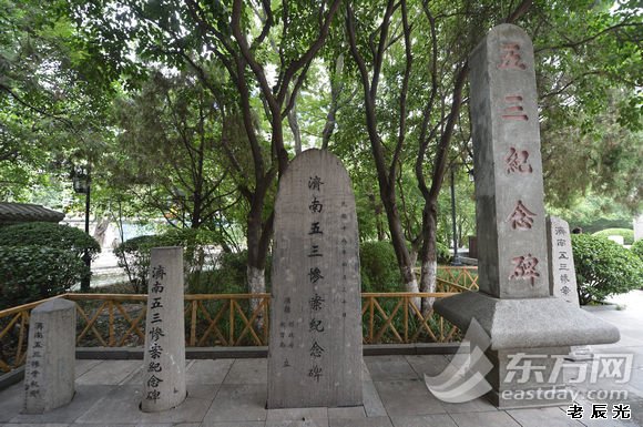 图片说明:“五三惨案”纪念园的“五三惨案”纪念亭最初位于小纬六路附近某小学的广场上,1932年由济南市民自发捐助建造,内有纪念蔡公时及惨案的挽联。
