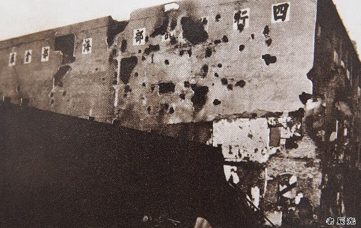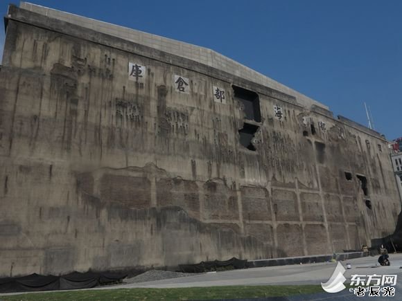 图片说明:四行仓库的西墙,修复了当年的炮眼和弹孔