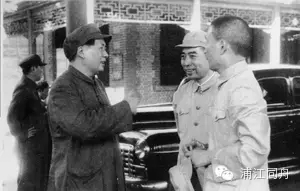 1949年8月28日,毛泽东、周恩来到北平前门车站迎接宋庆龄。图为毛泽东、周恩来与张治中交谈。
