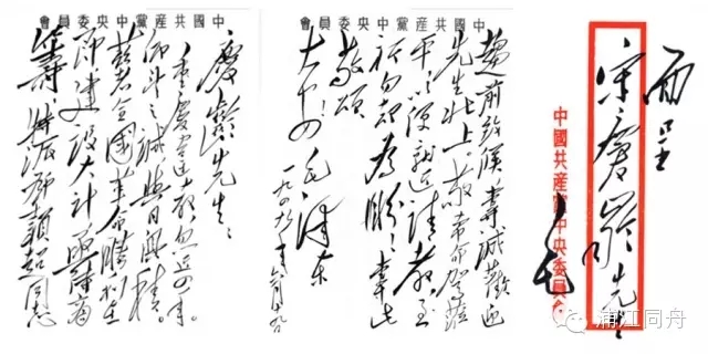 ![]() 1949年8月28日 宋庆龄由上海到达北平 宋庆龄由邓颖超、廖梦醒陪同,乘火车离沪赴平。宋庆龄到达北平,在火车站受到毛泽东、朱德、周恩来、何香凝等50余人的热烈欢迎,当晚,毛泽东宴请宋庆龄,大家畅谈甚欢。 1949年9月21日,中国人民政治协商会议第一届会议在北平举行。毛泽东请宋庆龄上主席台,坐在他和朱德的中间,还特别邀请她在会上发表讲话。在大会上,宋庆龄和与会代表一起举手通过了起临时宪法作用的《共同纲领》,通过了国旗、国徽和国都所在地等重要决议,为新中国诞生作了必要的准备。鉴于宋庆龄对中国革命的卓越贡献和非凡的才华,经毛泽东提议,她在这次会议上当选为中华人民共和国中央人民政府副主席。 新中国成立后,历史翻开了崭新一页。毛泽东和宋庆龄都在为党和国家大事日夜操劳。在参与国务活动当中,毛泽东、周恩来、刘少奇等领导人也经常就国内国际上重大问题和宋庆龄交换意见,或书信往来,政治上推心置腹。宋庆龄除参加国务活动外,还继续领导她一直负责的救济工作,积极致力于新中国的福利事业。1952年年初,宋庆龄创办了《中国建设》杂志,把新中国的真实情况介绍给全世界人民,推进世界人民对新中国的了解和友谊。 1953年初,宋庆龄在维也纳参加世界人民和平大会回国时,路过莫斯科,看到那儿的旅行闹钟不错,就买了两个,一个自用,另一个送给毛泽东,因为她知道毛泽东有夜间工作的习惯。1956年元旦,毛泽东又收到了宋庆龄寄来的贺年片,十分高兴,提笔给宋庆龄写了一封信: ![]() 释文: 亲爱的大姐: 贺年片早已收到,甚为高兴,深致感谢!江青到外国医疗去了,尚未回来。你好吗?睡眠尚好吧。我仍如旧,十分能吃,七分能睡。最近几年大概还不至于要见上帝,然而甚矣吾衰矣。望你好生宝养身体。