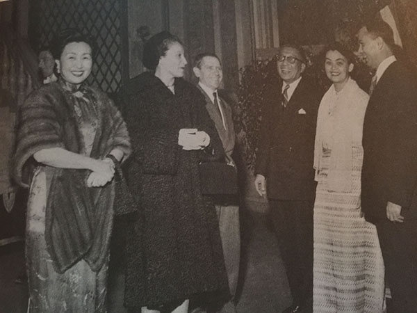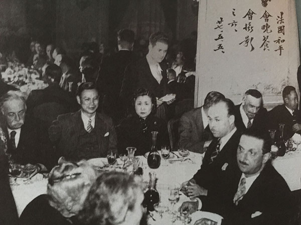 马尼拉欢迎张乐怡(站立,中间)的晚会。站在她身后的是麦克阿瑟,右边是赵四小姐。 在香港,宋子文夫人张乐怡成为了严幼韵的另一个闺蜜。而在马尼拉,除了菲律宾的政要外,美国麦克阿瑟将军和赵四小姐赵一荻也是聚会上的常客。待与顾维钧结合后,这位中国最著名的外交家的朋友圈自然也纳入进来了。比如原中华民国驻维也纳总领事何凤山、台湾“总统府”秘书长张群等。
