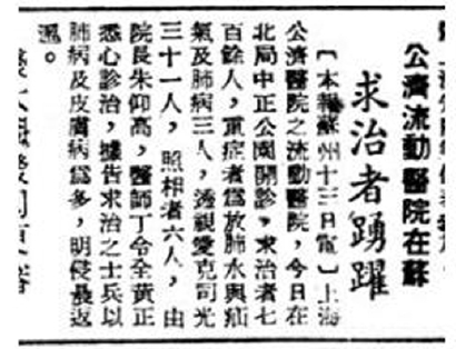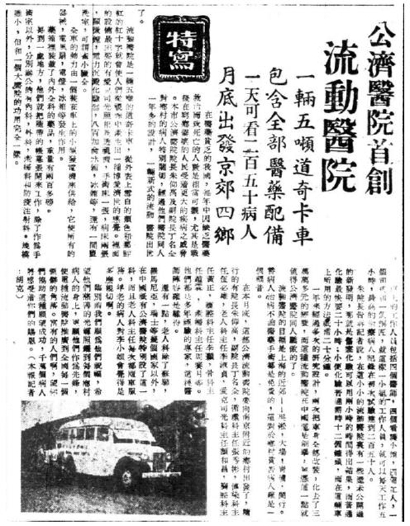 ◆1947年,《和平日报》报道公济医院首创流动医院