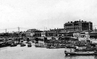 1900年,从苏州河上眺望公济医院。