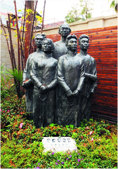 ![]() 景云里 邱力立 摄 ![]() 《二月》封面(柔石 著) ![]() 柔石 ![]() “左联”五烈士铜像 ![]() 鲁迅 ◆林楣 1928年6月的一天,一个戴着黑框圆边眼镜、中等身材、拎着皮质旅行箱,斯文儒雅的青年男子走进了虹口区横浜路35弄。抬眼望向弄堂口的刻字,青年知道了这里叫“景云里”,建造于1924年,是上海很普通的石库门里弄。 青年踌躇满志,他刚从国民党反动当局的追捕中逃出,心绪难平。这名青年就是柔石,原名赵平复,时年26岁,正是风华正茂时,却因逃亡而面容沧桑…… 师生之缘 1928年初,柔石在浙江宁海中共党组织和进步教师的支持下,出任宁海县教育局局长,致力教育改革,清除封建势力。5月,宁海中共党组织发动亭旁起义,暴动失败后,国民党反动派得知宁海中学是中共党组织的联络点,秘密抓捕柔石。柔石被迫出走上海,在朋友的牵线下,暂住在上海朋友的租住房里。看着这间小小的居室,柔石感慨万分,三年前的春天浮现眼前。 1925年春,桃花灼灼的日子,意气风发的柔石只身前往北京,他要去北京大学当旁听生。当时鲁迅先生在北大国文系讲授《中国小说史》,一周一次。这门课非常受欢迎,有很多外系的学生,去迟了,只能站在教室外的过道里听。所以,每逢鲁迅先生讲课,柔石必早早赶到教室。鲁迅讲课广征博引,语言幽默生动,语调平缓有力,吐字清晰,课堂气氛活跃,常引得学生笑声连连。鲁迅先生的普通话带有浓重的绍兴口音,与柔石家乡的宁波话有相近之处,听来特别亲切。柔石对鲁迅有着一种特别的亲近感,他详细地记笔记,不放过先生的每一句话。但这场师生之缘止于讲台上下,柔石未有机会私下拜见鲁迅先生。 1928年6月的上海,潮湿闷热,柔石此时的心绪就如这空气中的水分子,粘成一团难以散开。“先生定会给我指引。”立于朋友租住的小房间里,柔石迫切地想去拜见鲁迅先生。他知道鲁迅先生的居所就在邻处,于是,拿出一叠书稿,字斟句酌,这是他最新创作的长篇小说《旧时代之死》。柔石想,先生会对这部拙作给予怎样的评价? 几个月后,在鲁迅原厦门大学学生王方仁的引见下,柔石终于见到了先生。他忐忑不安,不知贸然拜见,是否会惊扰先生?然而,一见面,先生那带有浓重绍兴口音的普通话,让柔石一下子放松下来。 柔石告诉先生自己原名、笔名的由来,并惴惴地把《旧时代之死》送给先生审阅。鲁迅微微一笑,这个小说之名已然表明这个青年的心思。随口问道,从宁波而来,现居何处?柔石说,住在朋友的租住房里……鲁迅略一思考,说,这样吧,这里附近有间房,你们看看合适否? 附近这间房就是景云里23号。事实上,是鲁迅先生将自己居住的23号腾出来让给了柔石,自己一家则搬进了17号,鲁迅的三弟住在18号。这里附近还居住着陈望道、茅盾、叶圣陶、冯雪峰等一大批文化名人。 这是柔石与鲁迅真正的初次见面。 景云里23号,这间面积70平方米的石库门房子成为柔石在上海的安身之处,也是他革命文学之路新的起点。 那天,回到住处,柔石心潮澎湃。鲁迅先生智慧的语言、深刻的思想无不敲打着柔石的内心,尤其是先生对《旧时代之死》的两句点评,更让柔石心绪起伏,这两句话虽是写作上的评点,却更是一位前辈对后生的鼓励与教诲。 自那日后,柔石便成了鲁迅家中的常客。随着交往的增多,鲁迅对柔石的作品和人品都有了进一步的了解。鲁迅十分欣赏这个有思想有才情的青年,他从柔石的作品中感到了青春的活力。鲁迅尽力提携和帮助柔石,将柔石的《旧时代之死》和《人鬼和他的妻子》推荐发表,《旧时代之死》是柔石唯一一部正式出版的长篇小说。 在柔石心里,鲁迅亦师亦友亦父,鲁迅对柔石的生活、写作都产生了极大的影响。柔石的小说创作在题材、主题,甚至写作风格上都烙印着鲁迅的痕迹。 创作《二月》 一个落日余晖洒满街面的下午,柔石从窗外望向远处对面的屋顶,坡型屋顶有一个老虎窗,老虎窗里伸出一根新嫩的长竹竿。竹竿的一头光溜溜地架在屋顶的瓦片上,一头被绳子扎牢,吊在窗里的一个钩子上。看到这根竹竿,柔石倏忽一阵伤感,他想起了自家的那根竹竿,是母亲年初时候问乡下亲戚讨来的,也这样洗干净了吊在外面吹晒,说是吹吹晒晒,竹竿会牢固一些。他又想起了家乡的那条小河,一条不知名的河,常有妇女蹲在河边洗衣……楼下传来“咚咚”的声音,那是门环撞击大门的声音。一个想了很久的小说主题跳入了脑海,在“咚咚”声中回响……这就是后来享誉文坛的小说《二月》。 很多个夜晚,景云里23号的窗内映射出淡淡的黄色的光,那是柔石伏案灯下,奋笔创作《二月》。 写作《二月》时,柔石时常苦闷不已。他在肖涧秋身上看到了自己和许多青年知识分子的影子,他把自己的苦闷融化到小说里,反映了大革命前夕黑暗社会的沉闷,也反映了知识分子找不到出路的苦恼。柔石渴望通过塑造两个追求光明和进步的知识青年的形象,揭露半封建半殖民地社会是窒息人性的魔窟、孕育悲剧的温床。《二月》是柔石对现实的愤恨和思考,也是他渴盼改变现实的探索。 1929年夏天,《二月》成稿。柔石将书稿包裹得严严实实,放在一个皮包里,他叩开了鲁迅先生的家门。 鲁迅很郑重地接过书稿,亲自校阅全书。在《二月》里,鲁迅看到一个日益成熟的柔石,看到了柔石擅长的心理描写,时而欣悦,时而悲伤,时而向往,时而迷惘,整部作品贯穿着