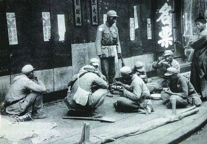 解放军战士为了不干扰市民的正常生活,在街上风餐露宿。
