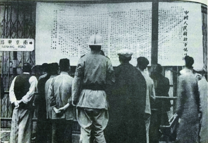 上海市民在南京路上观看《中国人民解放军公告》。 图片均来自城市解放系列丛书之《上海解放》,中国档案出版社。