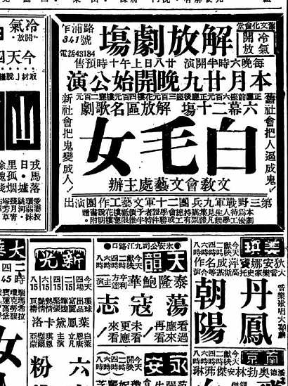 1949年6月27日刊登在《解放日报》上的《白毛女》演出广告