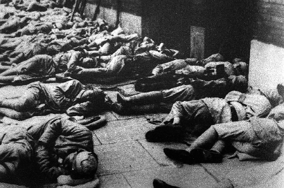 解放军战士在上海街头露宿