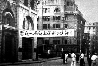 上海市民在九江路附近欢迎解放军