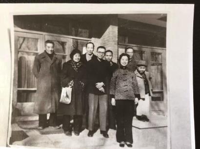 合影于梁思成寓前,左四梁思成,左三陈从周
