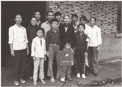 一九八七年十月,曾志回到井冈山与石来发全家合影