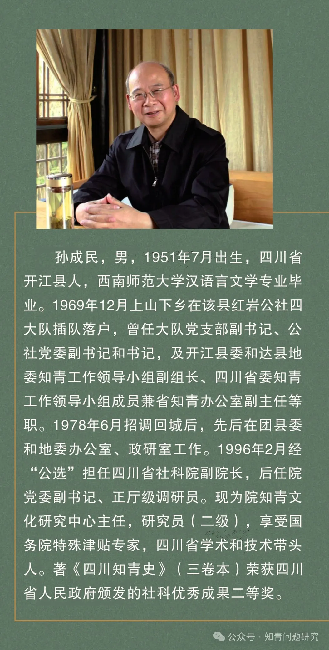 [编者按:1969年12月至1978年6月,在大巴山南麓的四川省开江县农村当知青的孙成民,返城以后上过“函大”、读过“刊大”、进过“专修班”,获得大专文凭。1996年2月,籍着在农村“大学”的实践与学习,凭着回城后的自学与砺炼,“考”进四川省社科院担任副院长。这是他数十年知识积累上的奋力一搏,也是成就他成为知青研究学者的一个重要转折点。这里,刊发此文以飨读者。]