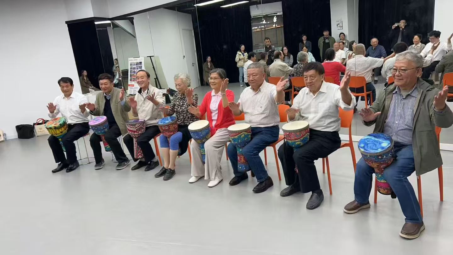 ![]() ![]() 七十岁学吹打,心有热爱正当时。老干部局为纪念习总为"老杨树"宣讲汇回信一周年,精心组织了一日活动,内容丰富实在,让我们一帮老者收获了快乐。 下午的社区文化实地考察,特意安排了学打"非州鼓"项目活动,引起了我的兴趣。之前,曾看过此类表演,感受到了它的张力和节奏,觉得赏心悦目,振奋人心。 我们在年轻导师的指导下,很快入门,这拨人都第一次接触,但都有点乐感,也不笨,几个乐节的敲打,左左右右、快快慢慢、强强弱弱,也能互相配合,落在一个点上,来上一段了。 集体敲击"非州鼓"讲究的是节奏统一与情感共鸣,而非个人技巧炫技,追求所有人融入同一韵律的“共同体感”。我们玩得很投入,它既能动手也要动脑,对身心健康绝对有益。 七十岁学吹打,吹的是岁月从容,打的是热爱滚烫。不必困于“年岁已高”的桎梏,也无需纠结“起步太晚”的遗憾。热爱从不论早晚,只要心怀向往,指掌就能奏响新章。 这不仅是学一门技艺,更是给生活添了一份鲜活,给时光添了一抹亮色——心有热爱,岁月便永远年轻,当下即是最好的开始。 一个小时的学习,还作了汇报演出。"开心就好",不是光顾着自己的开心,而是大家开心了就好!