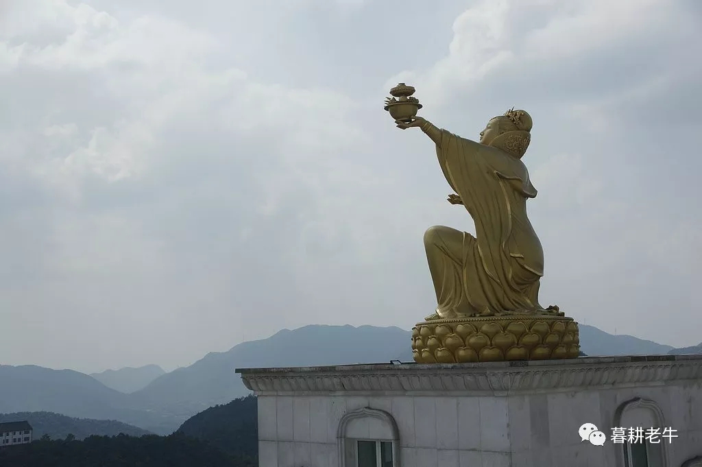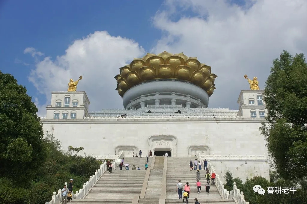 ![]() 应三妹表弟的邀请,我们家庭一行十八人于国庆长假期间到绍兴一游,收获颇丰。 虽然是第一次到绍兴,但对这一古老之城早已神游过无数次了:鲁镇、百草园、三味书屋、土谷祠,润土、阿Q、祥林嫂、豆腐西施、九斤老太……当然更有兰亭、鹅池,王羲之、陆游,这一系列的地名和人名,早在脑海中经常出现,并与“绍兴”这一地名紧紧地联系在一起了。 这次来到绍兴,自然要去了却夙愿。主人好客又周到,表弟不仅安排了我们到五星级酒店的食宿,还派来了全新的大巴,并让其儿媳做我们的向导,全程陪同,处理游玩的各种事务。客随主便,第二天我们便随她去兜率天景区。 ![]() 知道绍兴是有许多有名的景点的,但这兜率天景区却还是第一次听到。车入景区后便在山路上盘旋,路遇一寺,上书“会稽山·龙华寺”。哦,此山已属会稽山范畴了。再经几个弯,大巴就在一竖有石雕佛像和经塔的广场上停下。放眼望去,刚才经过的龙华寺便在对面的山巅上,金顶红墙,分外夺目;两侧还有灰瓦白墙的建筑数幢。这些建筑在葱郁的树木掩映下,显得十分的壮观。 回头看一汉白玉组成的建筑就高高地矗立在身后的山峰上,气势非凡。建筑正中的大门上刻有“兜率天宫”四字,由此看来此景区就是以此天宫命名的。正门两侧刻有“解脱”“般若”,而正中的最高处则是一汉白玉擎起的用金铂贴就的巨大莲座。这应是一片佛教圣地,据说其高耸在山峰之巅,与东面大海中的普陀山遥遥想望,一供奉弥勒,一供奉观音,形成呼应,普渡众生。 据介绍,兜率天景区建筑面积近10万平方米,南北纵跨三个山峰,由兜率天宫和龙华寺两大建筑群组成。兜率天宫从上到下依次为紫金莲花、观景平台、善法堂及七重宝恒。 ![]() 踏着分为三层的石阶上去,就来到天宫大门前。进入天宫,沿室内梯道上去,便是一宽大的平台。平台两边是鼓楼和钟楼,楼顶各有一涂金的女子雕像,均手托一金碗,朝向众山。雕像面目和善,栩栩如生。站在平台上凭栏眺望,四周景色皆奔入眼底:青山如黛,水库似玉,村庄好像积木一般缀于苍翠之中;刚才于广场上看到的龙华寺,现在一下子被推远了许多,与众山连成了一体。右侧山峦平地中耸起一塔,为“寿昌塔”,旁有零星的几间屋舍散落其间,被绿荫簇拥着。 平台后面层层而上的石阶,向着紫金莲花逐层收缩,游客可沿石阶上到更高一层的平台,在蓝天白云的衬托下,分外壮观。又经过六个平台,我们来到最高的平台上,只见数十根白色巨柱擎起一硕大的金色莲花座,与天齐高,这就是兜率天宫的正殿--38米高的善法堂了。殿内供奉的是一座33米高的天冠弥勒。宫前平台上有一长方形的水池,水池四周塑有金色的十二生肖,个个口中喷水,射向水池中。置身于平台之上,如在空中一般,仿佛伸手便可摘下天上的云朵来。 有数位女子身着汉服站在平台那莲花状的石墩上,随着梵音翩翩起舞。不知她们是天宫组织的还是自行而来,其服饰、身姿与四周的景色却是十分的和谐,为天宫平添了许多的禅意。 ![]() 沿平台四周转转,能看到远处密密的城市建筑,在众山的怀抱中安详地躺着,沐浴着秋日的阳光。拥有这样的美丽山水的城市是幸福的,拥有这样的壮丽河山的人民也是幸福的。平台后有一巨大的坐佛,依山而起。只见他怒目而视,俯瞰下界,是愤恨人世的贪欲吧?他手中托有的佛塔,是要镇压那些作恶之人吗?佛让人从善,教人去恶,这恐怕应该是盛世建庙本意吧! 下得山来,回望刚才登临的平台最高处,金色的莲座在阳光下熠熠生辉,衬着蓝天,挽着白云。我忽然想起鲁迅来了…… (责任编辑:晓歌) |