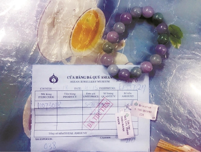 姜女士在芽庄旅行时被迫购买的翡翠手串。车佳楠 摄